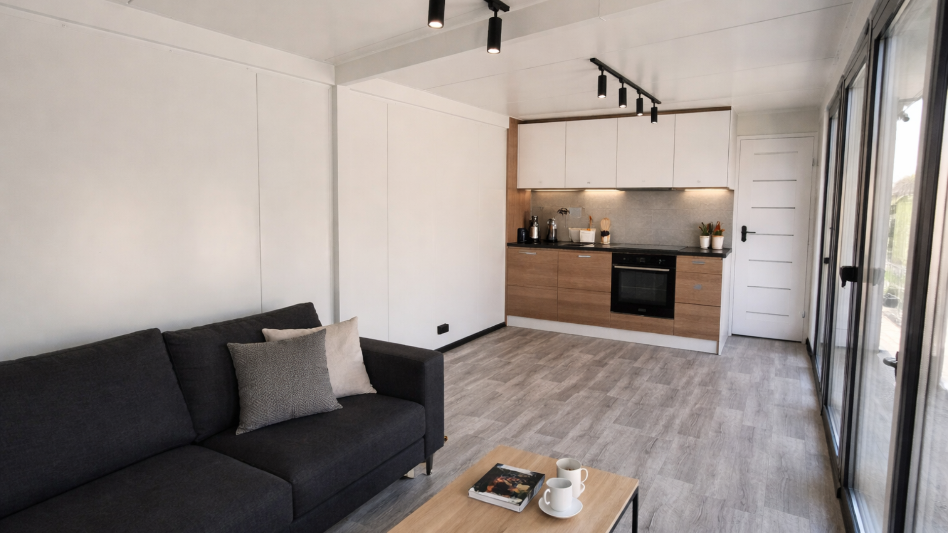 Kontener Mieszkalny Model F – kompaktowy, nowoczesny dom mobilny o wysokim standardzie wykonania