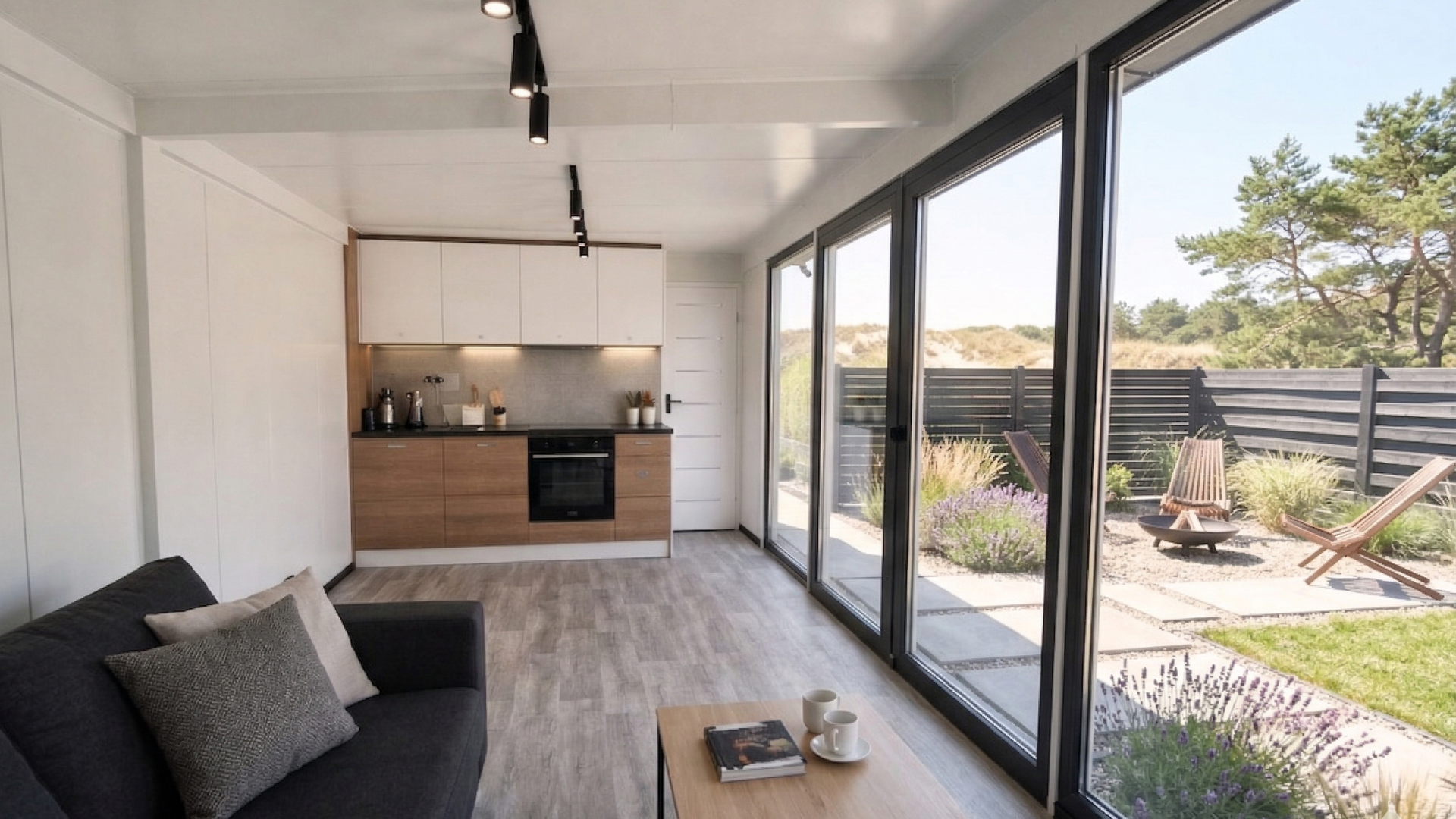 Ten kompaktowy i komfortowy dom mobilny jest gotowy do zamieszkania od pierwszego dnia i idealnie sprawdzi się jako całoroczne, estetyczne miejsce do życia lub pawilon usługowy.