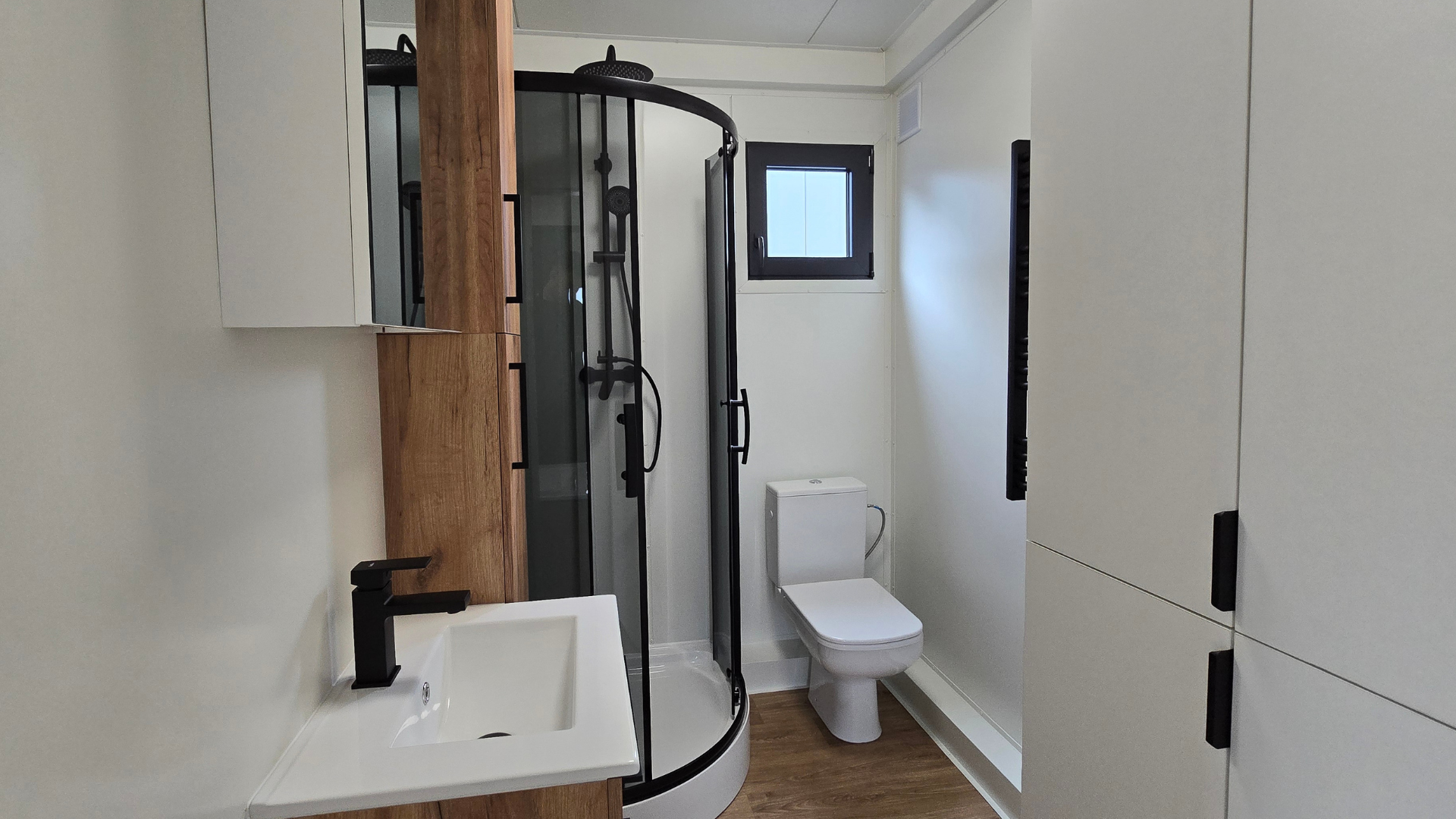 Domek z kompletną instalacją i gotową łazienką, dający pełną swobodę w umeblowaniu reszty wnętrza.